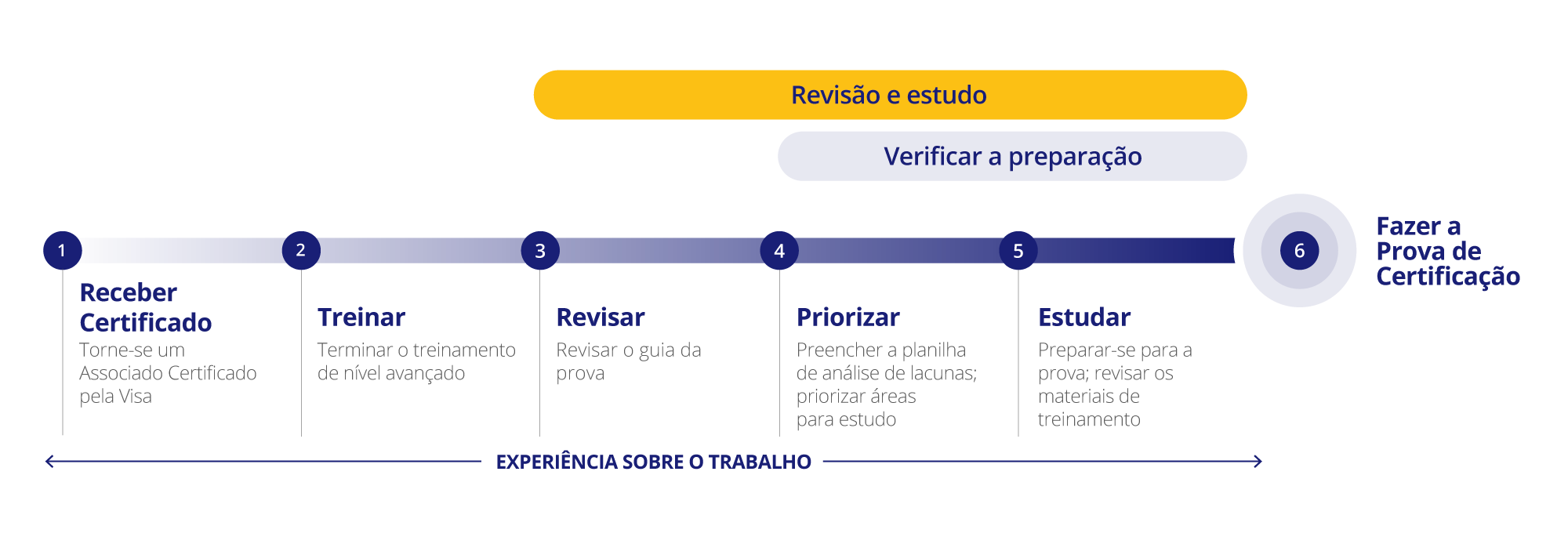 Recomendamos uma combinação de treinamento, estudo e experiência no trabalho ao se preparar para o Exame de Resolução de Disputas Visa — Nivel Avançado.